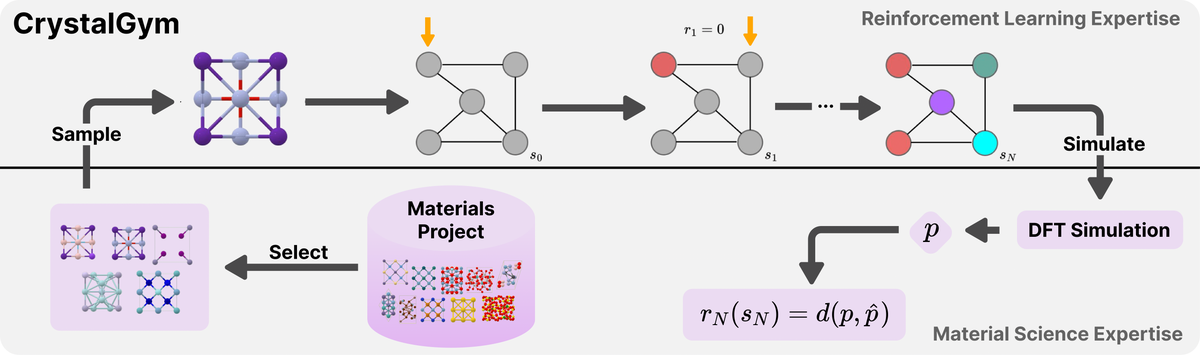 - Govindarajan, Prashant, Mathieu Reymond, Antoine Clavaud, Mariano Phielipp, Santiago Miret, and Sarath Chandar. CrystalGym: A New Benchmark for Materials Discovery Using Reinforcement Learning. In AI for Accelerated Materials Design-ICLR 2025.